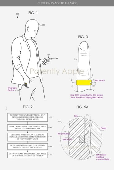 ABŞ-ın Patentlər və Əmtəə Nişanları İdarəsi Apple şirkətinin yeni patent sorğusu barəsində məlumat təqdim edib. Apple tərəfindən göndərilmiş patent sorğusunda smart üzük barəsində məlumatlar əks olunub. Məlumata əsasən sözügedən smart üzük insan səhhətinin müxtəlif göstəricilərinin monitorinqində istifadə edilə bilər. 20220386955A1 nömrəsinə sahib yeni patentə əsasən şirkətin bu yeni texnologiyası ürək döyüntülərinin tezliyini, qandakı oksigen miqdarını, arterial təzyiqi və digər özəllikləri ölçə bilər.
