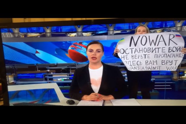 "Pervıy kanalı"n efirində "Müharibəyə yox!" plakatı açan redaktor saxlanılıb - VİDEO
