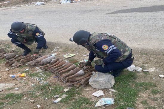 Hüquq-mühafizə orqanı əməkdaşları ilə birgə ərazidə müvafiq təhlükəsizlik tədbirləri görüldükdən sonra hadisə yerinə baxış zamanı aşkar edilmiş sursatın 10 ədəd 100 mm-lik minaatan mərmisinin, 2 ədəd 100 mm-lik tank mərmisinin, 10 ədəd RPQ-7 mərmisinin hissələri və bəzi mərmi qirintıları olduğu müəyyən edilib.
