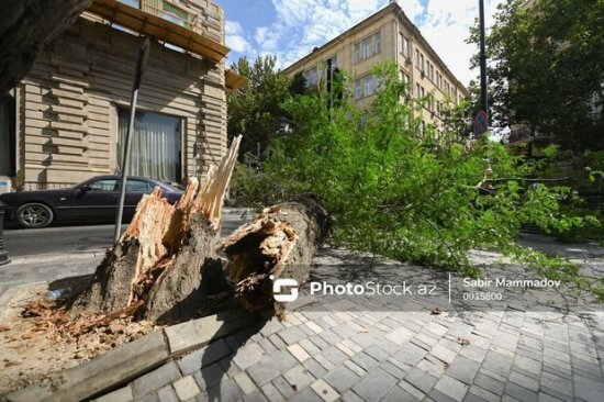 Güclü külək paytaxtda ağacları aşırdı - FOTO
