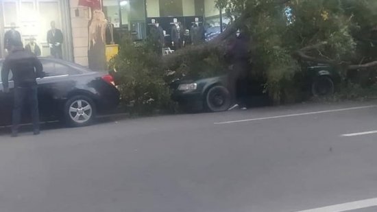 Yasamalda külək ağacı avtomobillərin üzərinə aşırdı