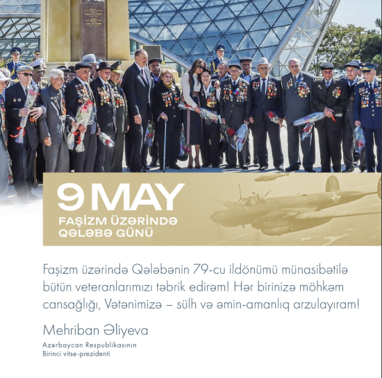 “Faşizm üzərində Qələbənin 79-cu ildönümü münasibətilə bütün veteranlarımızı təbrik edirəm! Hər birinizə möhkəm cansağlığı, Vətənimizə – sülh və əmin-amanlıq arzulayıram!”