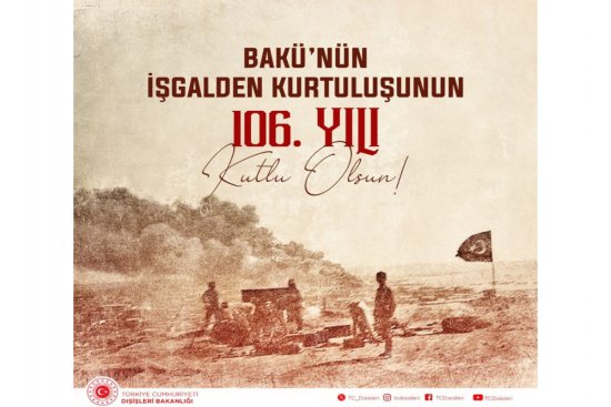 Türkiyə Xarici İşlər Nazirliyi Bakının işğaldan azad edilməsinin 106-cı il dönümü ilə bağlı paylaşım edib.