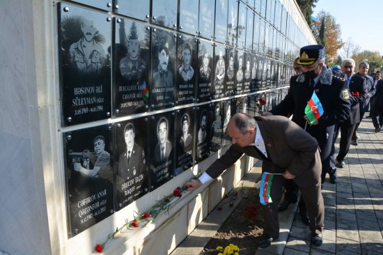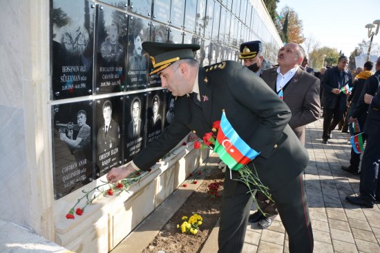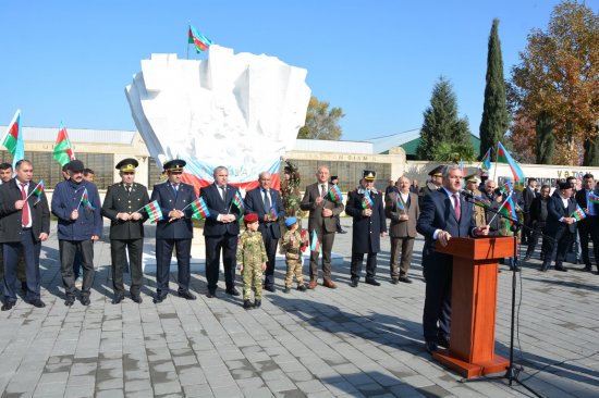 Tədbirdə əvvəlcə ölkəmizin ərazi bütövlüyü uğrunda canlarını fəda edən əsgər və zabitlərimizin xatirəsi bir dəqiqəlik sükutla yad edilib, Dövlət himni səsləndirilib, abidənin önünə tər gül dəstələri düzülərək Şəhidlərin ruhlarına dualar oxunub.