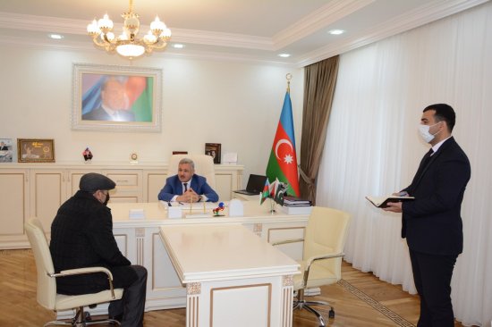 Tərtər Rayon İcra Hakimiyyətinin başçısı Müstəqim Məmmədov karantin qaydalarının tələblərinə əməl etməklə vətəndaşları qəbul edib.