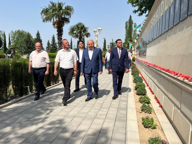 Sonra meliorasiya işçiləri Tərtər Rayon İcra Hakimiyyətinin başçısı Müstəqim Məmmədovla birlikdə Ulu Öndərin Mərkəzi Meydanda ucalan abidəsini ziyarət edib, abidənin önünə gül-çiçək dəstələri düzüb, dahi rəhbərə öz ehtiramlarını bildiriblər.