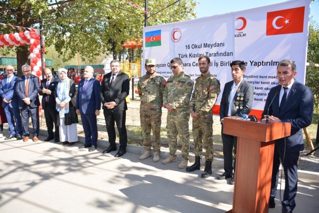 Türk qurumlarının Azərbaycanın fərqli bölgələrində müxtəlif lahiyələr həyata keçirdiyini dilə gətirən səfir məktəbliləri sevindirmək məqsədilə Türk Kızılayın Azərbaycan Qızıl Aypara Cəmiyyəti ilə birgə Fizuli, Tərtər və Ağdam rayonlarında 16 uşaq oyun meydançası qurduğunu, burada uşaqların asudə vaxtlarını maraqlı keçirəcəyini deyib. Səfir açılışın xeyirli, uğurlu olmasını arzulayıb.