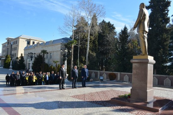 Əvvəlcə tədbir iştirakçıları Mərkəzi Meydanda Ulu öndər Heydər Əliyevin abidəsinin və Şəhidlər Abidə kompleksinin önünə gül dəstələri düzüb, xatirələrini ehtiramla anıblar.
