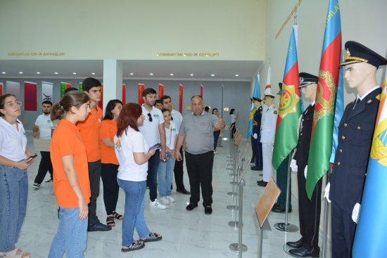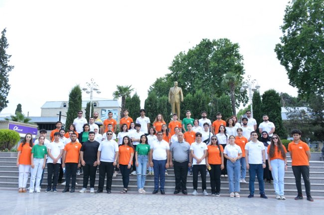 Yay düşərgəsinə qatılan gənclər Ümummilli liderin xatirəsinə ehtiram əlaməti olaraq Mərkəzi Meydanda abidəsini ziyarət edib, önünə gül-çiçək dəstələri düzüblər.
