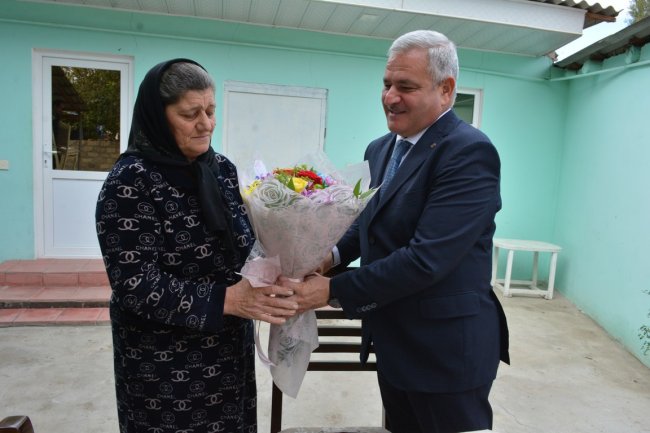 Rayon rəhbəri Vətən Müharibəsi şəhidi Elnur Hüseynovun anası Hüseynova Bənövşə Ağaməmməd qızını 60 illik yubileyi münasibəti ilə təbrik edib