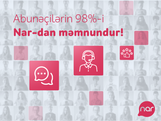 2022-ci ildə müxtəlif sorğularla “Nar” mərkəzlərini ziyarət edənlərin 98.6%-i göstərilmiş xidmətdən məmnun qalıblar. Ötən ilin hesabatına əsasən, 777 Çağrı Mərkəzi və Nar+ tətbiqinə müxtəlif sorğularla 2 milyona yaxın abunəçi müraciət edib. Çağrı Mərkəzində göstərilən xidmətdən abunəçilərin 89%-i, Nar+ tətbiqindən yararlananlardan isə 87%-i razılıq bildirib.