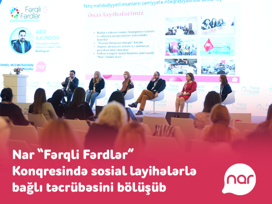 Konqresdə müxtəlif sahələrdən olan tanınmış yerli və beynəlxalq spikerlər çıxış ediblər. “Nar”ın İctimaiyyətlə Əlaqələr Departamentinin rəhbəri Əziz Axundov da mobil operatorun tətbiq etdiyi uğurlu sosial layihələrlə bağlı təcrübələrini bölüşüb: “Nar olaraq cəmiyyətin həssas qisminə yönəlik layihələr etməkdə davam edirik, “Təlim məktəbi” və “Jest dili” kimi layihələrimizlə eşitmə məhdudiyyətli şəxslərin cəmiyyətə inteqrasiyasına və maliyyə azadlığına dəstək olmağa çalışırıq”. Mobil operator indiyədək fiziki məhdudiyyətli insanlara yönəlik davamlı sosial layihələrlə çox sayda insanın həyatında müsbət dəyişikliklər edib.