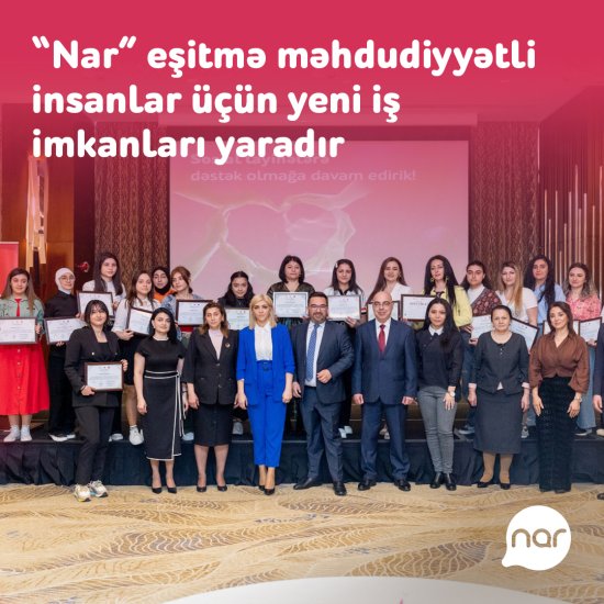 Nitq və eşitmə məhdudiyyətli şəxslərin cəmiyyətə inteqrasiyasına xüsusi önəm verən “Nar”, “Təlim Məktəbi” layihəsi çərçivəsində 20 xanıma manikür peşəsi üzrə təlimlər təşkil edib. Təlimləri uğurla başa çatdıran xanımlar peşə üzrə sertifikatlarla təmin olunub, eyni zamanda mobil operator onlara öz kiçik bizneslərinə başlamaq üçün lazımi manikür avadanlığı dəstləri də hədiyyə edib. Layihənin əsas məqsədi də məhz iştirakçıların maliyyə azadlığını təmin etmək və onları öz ayaqları üzərində dura bilən fərdlər olaraq cəmiyyətə qazandırmaqdır.