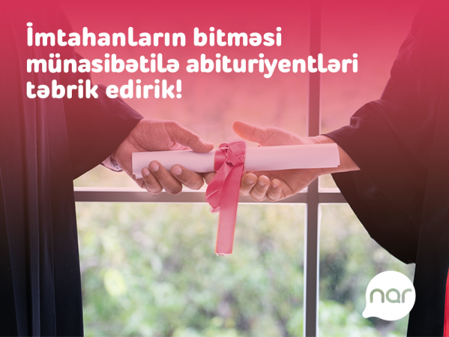 “Nar” qəbul imtahanının bitməsi münasibəti ilə abituriyentləri təbrik edir