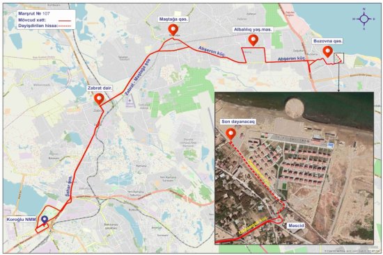107 nömrəli müntəzəm marşrutun hərəkət istiqaməti “Buzovna” çimərliyinədək təşkil ediləcək;