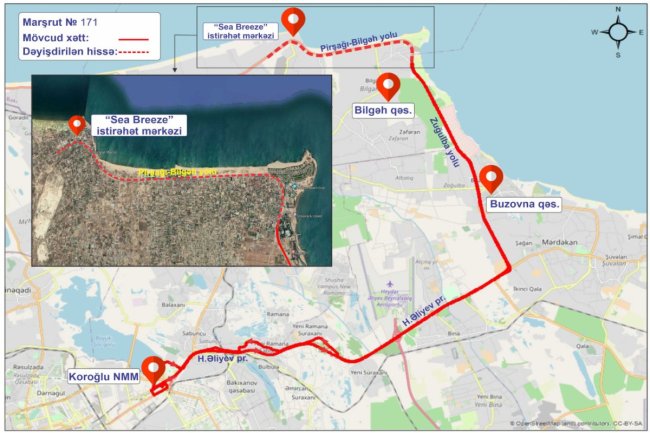 171 nömrəli müntəzəm marşrutun hərəkət istiqaməti “Sea Breeze” istirahət mərkəzinədək təşkil ediləcək;