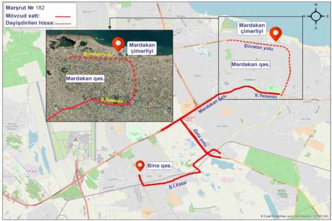 182 nömrəli müntəzəm marşrutun hərəkət istiqaməti “Mərdəkan” çimərliyinədək təşkil ediləcək.