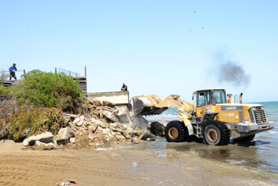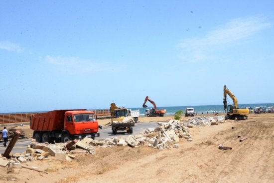 “Qeyd olunan qanunsuzluqların aradan qaldırılması, eləcə də dövlət başçısı cənab İlham Əliyevin Xəzər dənizinin sahilboyu ərazilərinin qanunvericiliyin tələblərinə uyğun olaraq bərpa edilməsi və insanların dəniz sahilinə sərbəst giriş-çıxışı təmin edilməsi ilə bağlı müvafiq Sərəncamının icrası məqsədi ilə səhər saatlarından etibarən Bakı Şəhər və Xəzər Rayon İcra Hakimiyyətlərinin, kommunal qurumların texnikaları və işçiləri tərəfindən Buzovna qəsəbəsində sahilyanı ərazilərdəki qanunsuzluqların aradan qaldırılmasına başlanılıb. Zəbt edilən torpaq sahələrinin hasarları, ərazidə bəzi sənədsiz tikililər, çimərlik ərazisinə daxil olmağa mane olan sədlər sökülür. Həmçinin kommunal xidmətlərin işçiləri tərəfindən qayalıq ərazilərinin müxtəlif tullantılardan təmizlənməsinə başlanılıb.