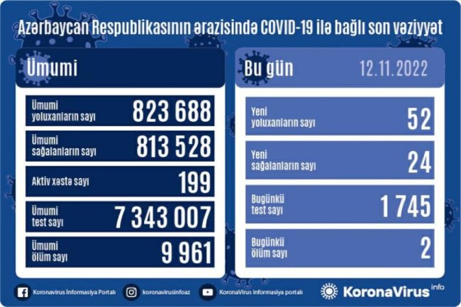 Azərbaycanda daha 52 nəfər COVID-19-a yoluxub, 2 nəfər vəfat edib