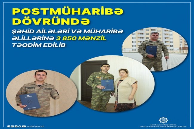 Postmüharibə dövründə şəhid ailələri və müharibə əlillərinə 3850 mənzil verilib