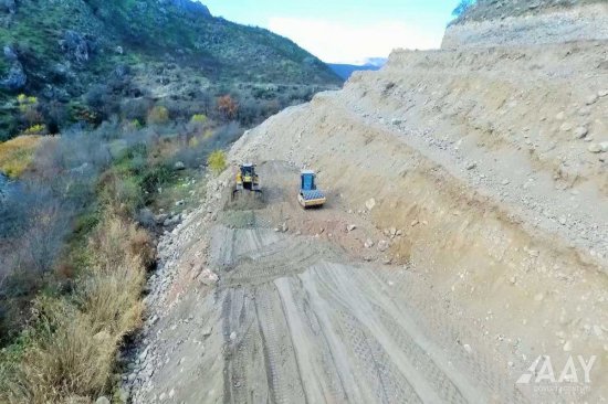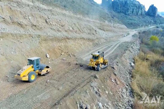 Məlumata görə, “İnşaat Norma və Qaydaları”na uyğun olaraq Qubadlı rayonu ərazisində Eyvazlı kəndinə gedən və çətin relyefə malik ərazidən keçən avtomobil yolunun layihə eninin alınması üçün qaya qruntları dağıdılmaqla torpaq yatağının tikintisi işləri davam etdirilir.