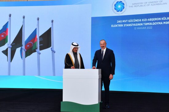 Prezident İlham Əliyev və şahzadə Əbdül Əziz bin Salman Əl-Səud stansiyanın təməlini qoyublar.