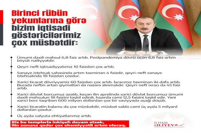 Azərbaycan Prezidenti İlham Əliyev aprelin 12-də bu ilin birinci rübünün yekunlarına həsr olunan müşavirədən paylaşımlar edib.