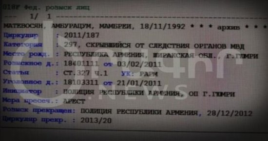 Ermənistanın baş nazirinin müavini Ambartsum Matevosyanın 2012-ci ildə beynəlxalq axtarışda olması faktı üzə çıxıb.
