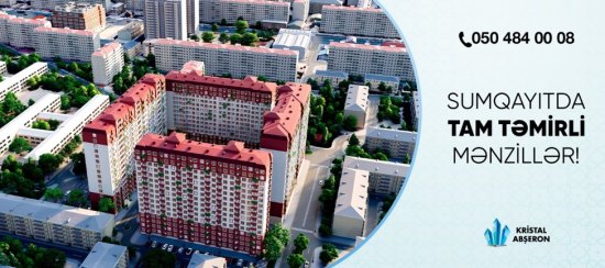 Xəyallarınız yarım qalmasın! Kristal Abşeron Sumqayıt layihələrində mənzil sahibi olmaq istəyən müştərilərinə AYLIQ SADƏCƏ 360 AZN ödəməklə kirayə qiymətinə mənzillər təklif edir! Mənzillər isə TAM TƏMİRLİ!