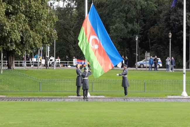 Almaniya Prezidentinin Berlindəki Bellevue İqamətgahında keçirilən mərasimdə Azərbaycanın dövlət bayrağı qaldırılıb”, - səfirliyin məlumatında qeyd olunub.