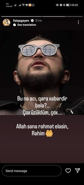 Vertikal.az APA-ya istinadən xəbər verir ki, bu barədə Xalq artisti Faiq Ağayev sosial şəbəkə hesabında paylaşım edib.