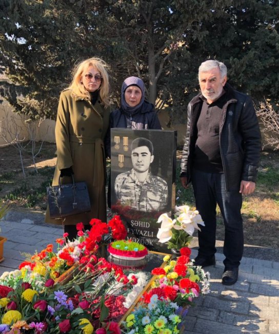 Şəhidimizin əziz xatirəsini yad etmək üçün UNEC-in Ümumi fənlərin tədrisinin təşkili departamentinin direktoru dosent Gülnarə Rzayeva və departamentin müəllimləri Sevinc Qayibova, Zeynəb Hüseynova, Mətanət Əmrahova, Aygün Əmirova Eyvazlı Məzdək Əli oğlunun Lökbatan qəsəbəsinin Şəhidlər xiyabanında məzarını ziyarət edərək məzarı önünə gül dəstələri düzüblər. Şəhidimizin əziz və əbədi xatirəsini ailəsi ilə birlikdə yad edərək anası Gülnarə xanımdan oğlu haqqında xatirələri dinləyiblər.