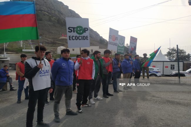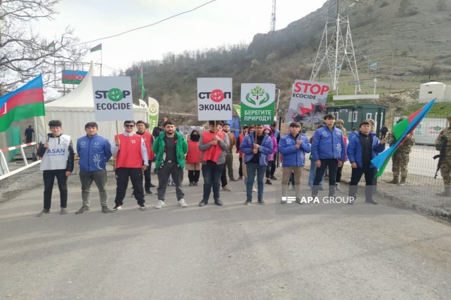Rusiya sülhməramlılarının müvəqqəti nəzarətində olan ərazilərdə faydalı qazıntı yataqlarının, xüsusilə "Qızılbulaq" qızıl və "Dəmirli" mis-molibden yataqlarının qanunsuz istismarına etiraz olaraq ekofəallar və QHT təmsilçiləri Şuşa şəhərində - Laçın-Xankəndi yolunda aksiyanı davam etdirir.