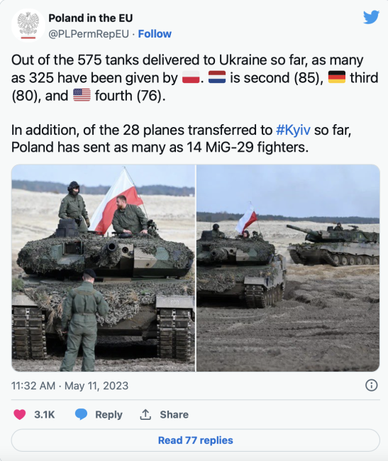 Bundan başqa, Kiyevə 28 ədəd MiQ-29 qırıcısı təhvil verilib ki, onların da 14-ü məhz Varşava tərəfindən tədarük olunub.