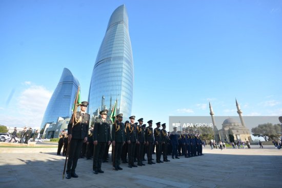 APA xəbər verir ki, hərbi orkestrin müşayiəti ilə təşkil olunan yürüşdən əvvəl şəhidlərin ruhu bir dəqiqəlik sükutla yad edilib.