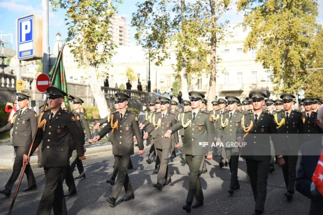 Bakıda Zəfər Günü münasibətilə hərbçilərin yürüşü keçirilib.