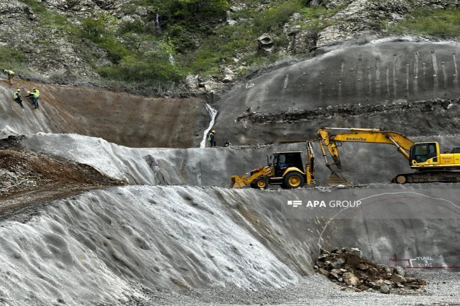 Qeyd olunub ki, işlərin növbəti ilin sonunda başa çatdırılması üçün Xankəndi-Şuşa-Laçın avtomobil yolunda tikinti işləri sürətlə davam etdirilir.
