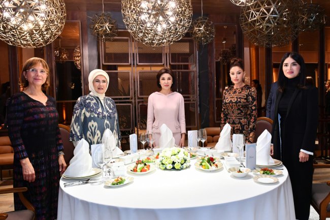 Birinci xanım Mehriban Əliyeva Səmərqənddə təşkil olunan şam yeməyində iştirak edib - FOTO