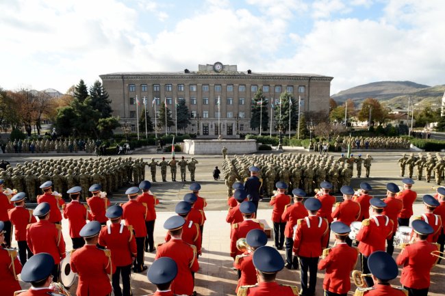 Prezident İlham Əliyev Xankəndidə hərbi paradda iştirak edib