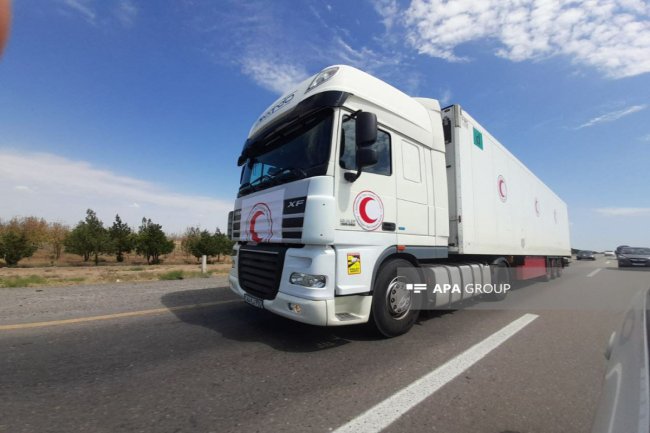 Bakıdan Xankəndiyə yola salınan 40 ton unla yüklü avtomobillər Hacıqabula çatıb - VİDEO